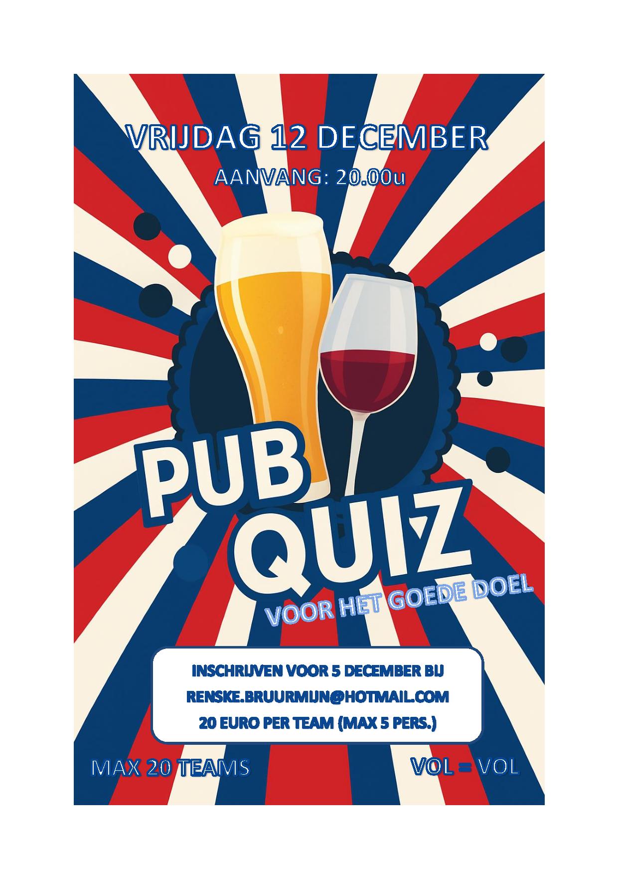 Daarom organiseer ik op Vrijdag 12 December om 20.00u een PUBQUIZ
