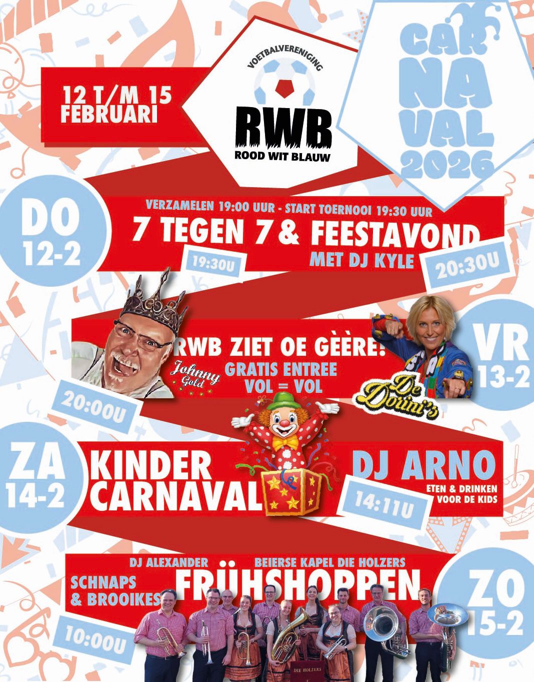 Dus trek oe pekske aan, neem oe goeie zin mee en kom meefeesten bij RWB. Want één ding is zeker: bij RWB barst carnaval weer ouderwets los! 🥳🎶